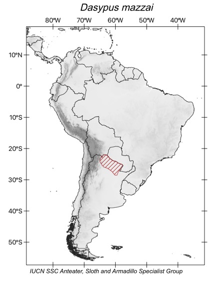 Dasypus mazzai está classificado como Dados Insuficientes (DD), já que não há informação sobre sua exata área de distribuição ou o estado da população desta espécie. Também não se conhece as ameaças que a afetam.