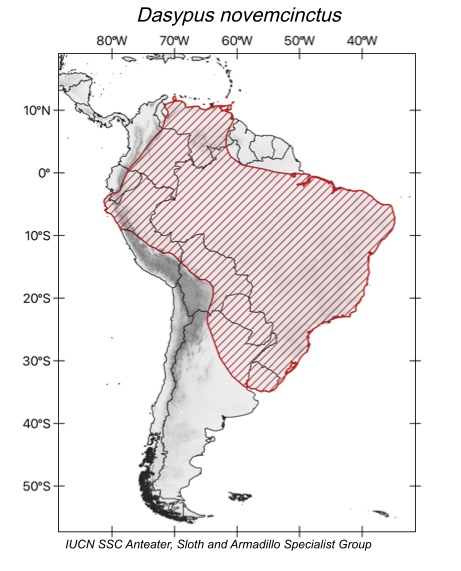 Este tatu é distribuído desde as encostas orientais dos Andes, do Equador, Colômbia e Venezuela até o Brasil, Peru, Bolívia, Paraguai, Uruguai e norte da Argentina. Também está presente em Trindade e Tobago. Esta espécie está ausente no Escudo Guianês, exceto na zona periférica do leste da Venezuela, onde pode ocorrer em simpatria com o Dasypus guianensis. Ocorre desde o nível do mar até 2300 m.